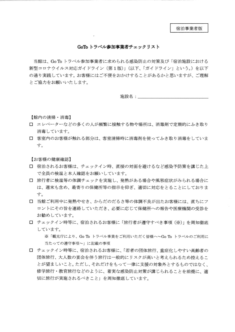 2020-08-01「GoToトラベル参加事業者」新型コロナウイルス感染拡大防止策①