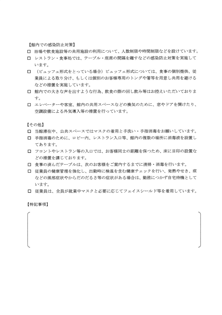 2020-08-01「GoToトラベル参加事業者」新型コロナウイルス感染拡大防止策②
