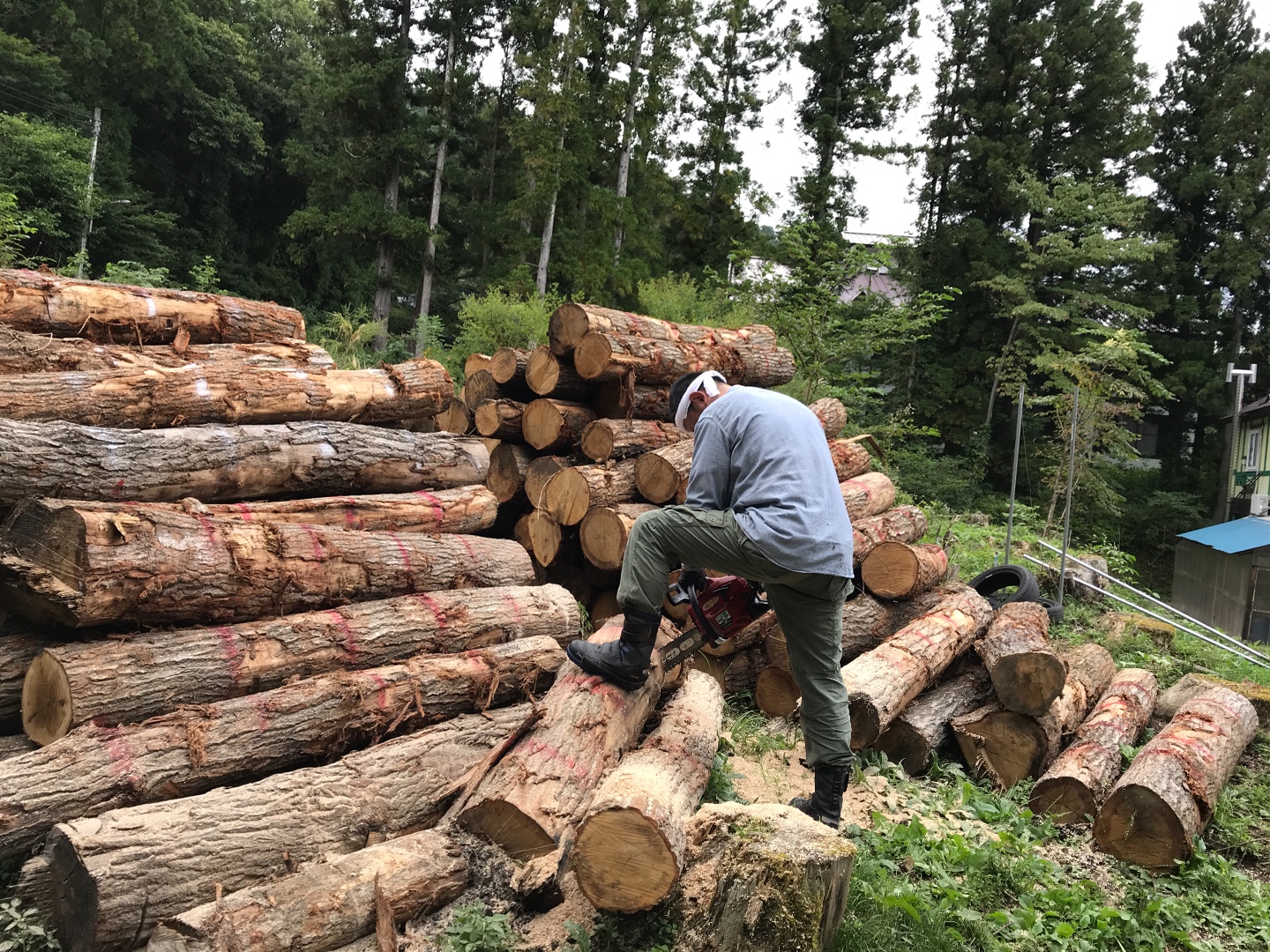 薪作り🌲 玉切りして、割っていきます💪 薪割り体験してみたいお客様 お声がけください❗️😄